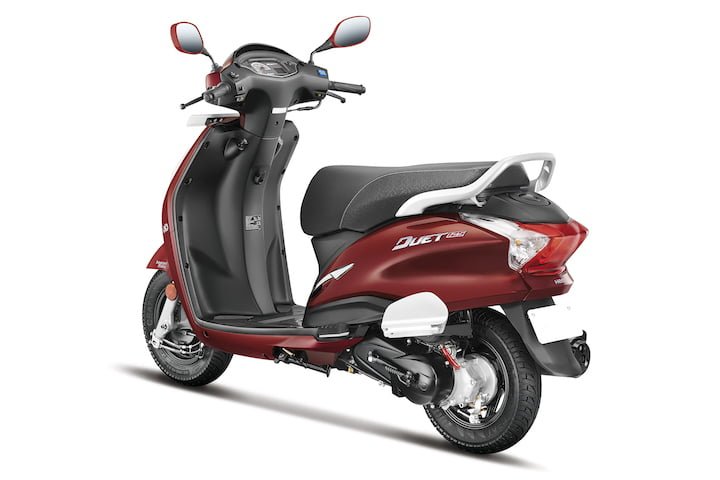 Seat texture is also dual tone and seat size look moderate. There are telescopic suspensions on the front and combination brakes arrangement. The front and rear both get drum brakes. The side profile of the scooter looks average while the rear looks attractive. There is also silver colour heat shield on the exhaust pipe along with silver grab rails behind the pillion rider seat.